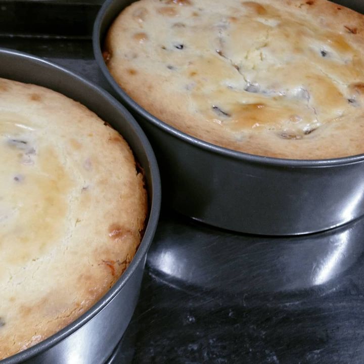 ワインと楽しめるスイーツ第1段!『ブルーチーズとイチジクのチーズケーキ』焼き上がりました☺️1日寝かせて明日からご提供します❗