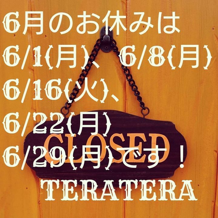 6月のお休みは5回です!もうしばらくテイクアウト営業も続けます!明日はお休みします!