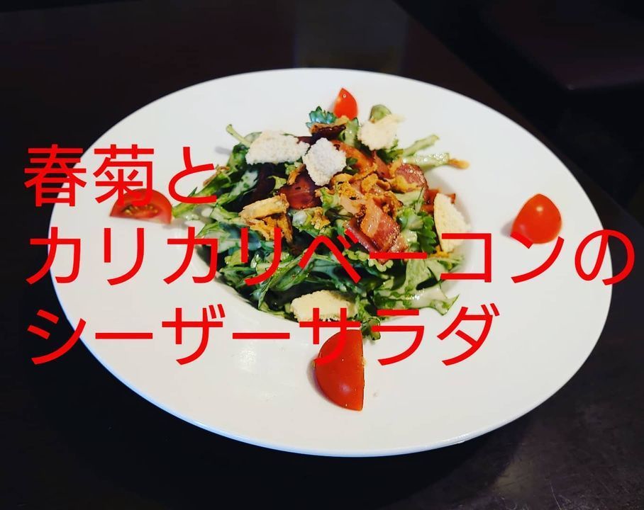 今日のオススメは『春菊とカリカリベーコンのシーザーサラダ』です♪数量限定です