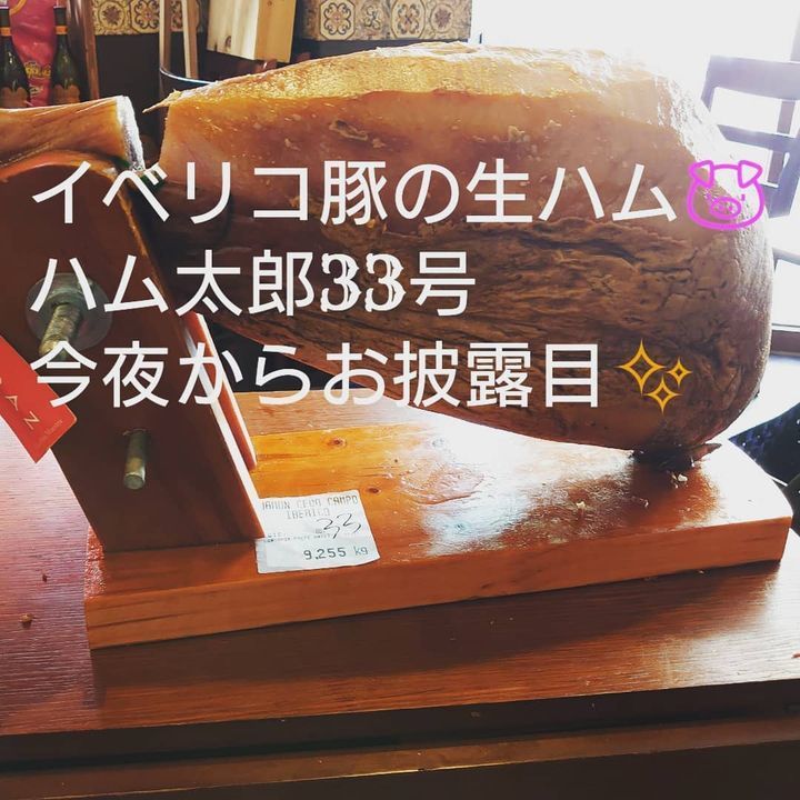 今夜からイベリコ豚の生ハム『ハム太郎33号』がお披露目です✨おろしたての生ハムは格別ですよ!この機会にぜひ!