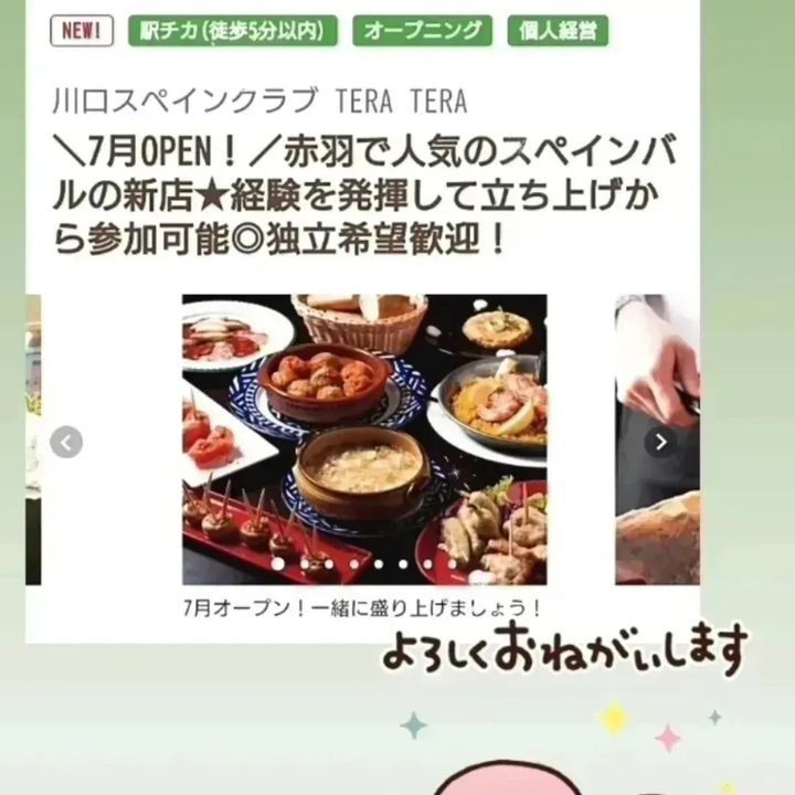 立ち上げやってみたい方!飲食店好きな方!スペイン好きな方!お待ちしております🙌✨